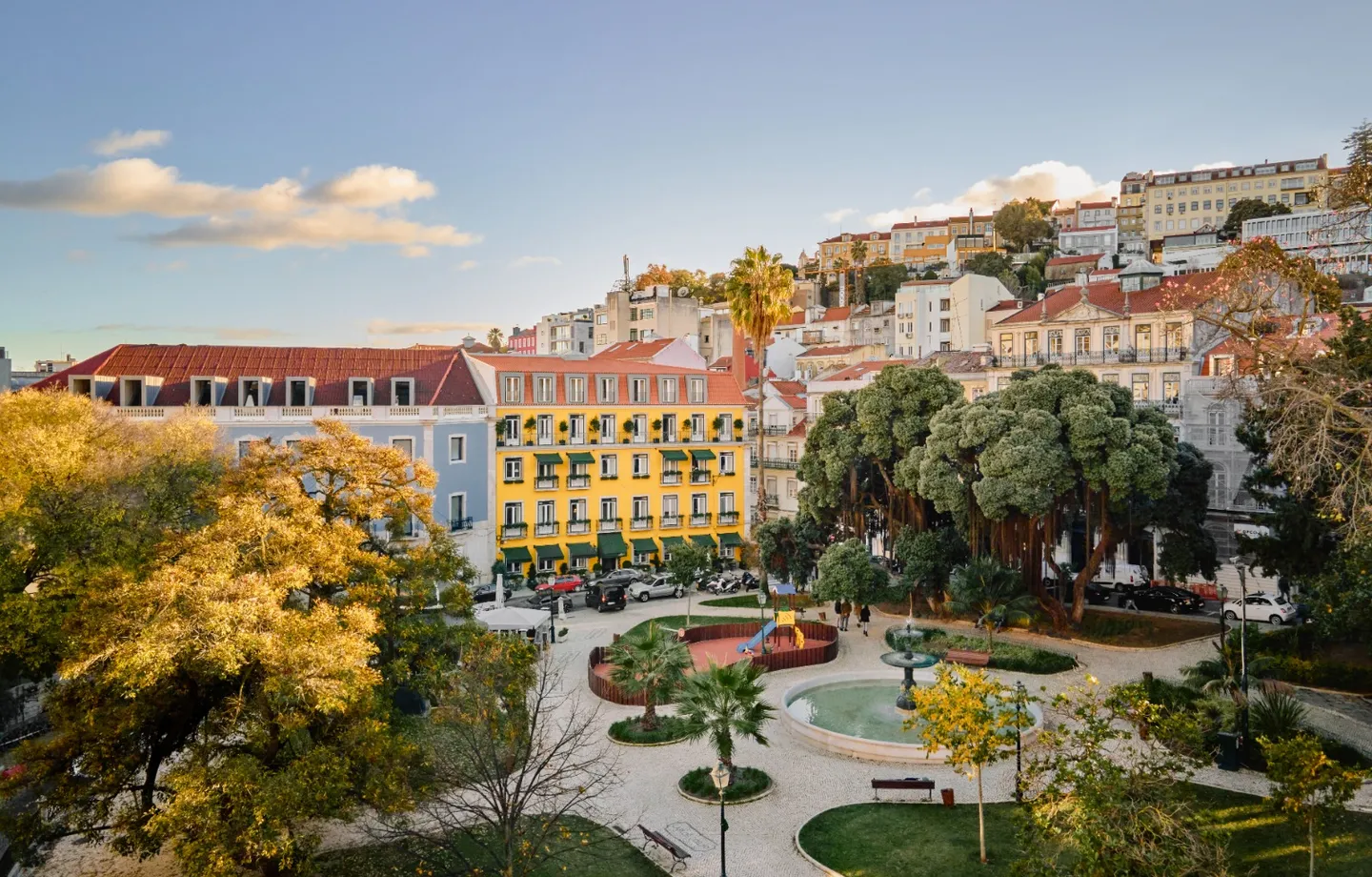 A XIX century townhouse loaded with charm, lovingly restored overlooking a quiet historical praça with a spectacular fountain, palms and centenarian banyan trees, right in prestigious central Lisbon. Decorated to the feel of a home in harmony with the spirit of the building integrating the Lisbon ambiance, Alegria provides 36 stylish rooms and suites. Superbly comfortable rooms, relaxing lounges, appetizing menus served midday to midnight enhance the low-key stylish ambiance with a charming atmosphere.
