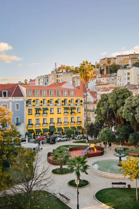 A XIX century townhouse loaded with charm, lovingly restored overlooking a quiet historical praça with a spectacular fountain, palms and centenarian banyan trees, right in prestigious central Lisbon. Decorated to the feel of a home in harmony with the spirit of the building integrating the Lisbon ambiance, Alegria provides 36 stylish rooms and suites. Superbly comfortable rooms, relaxing lounges, appetizing menus served midday to midnight enhance the low-key stylish ambiance with a charming atmosphere.